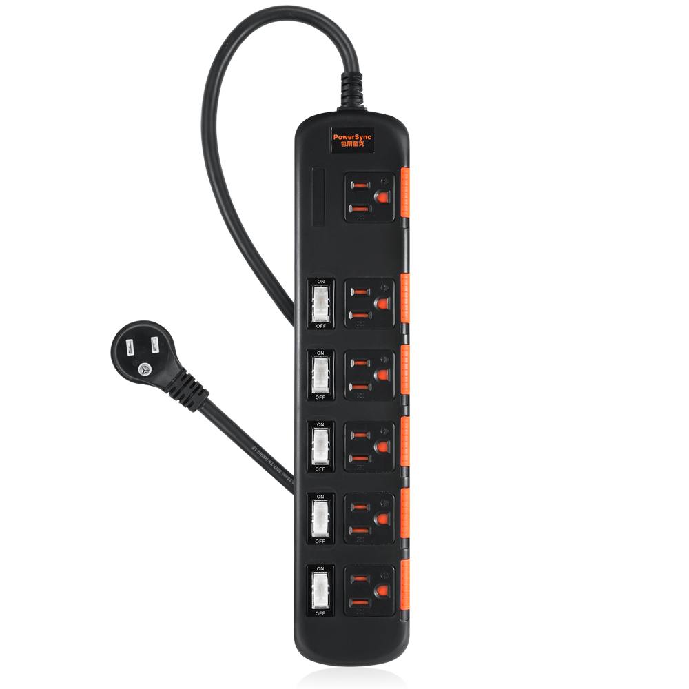 【台灣製】六開六插安全防雷防塵延長線-黑色