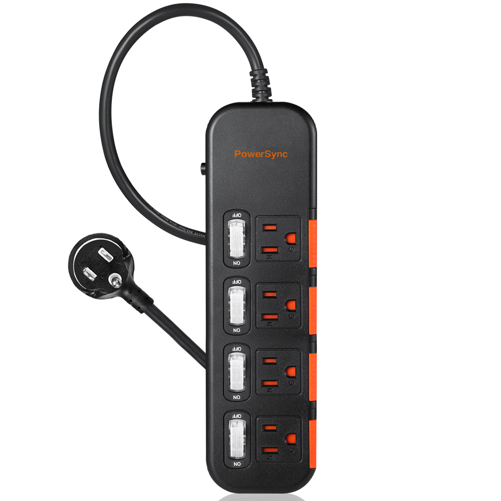 四開四插滑蓋防塵防雷擊延長線-黑色