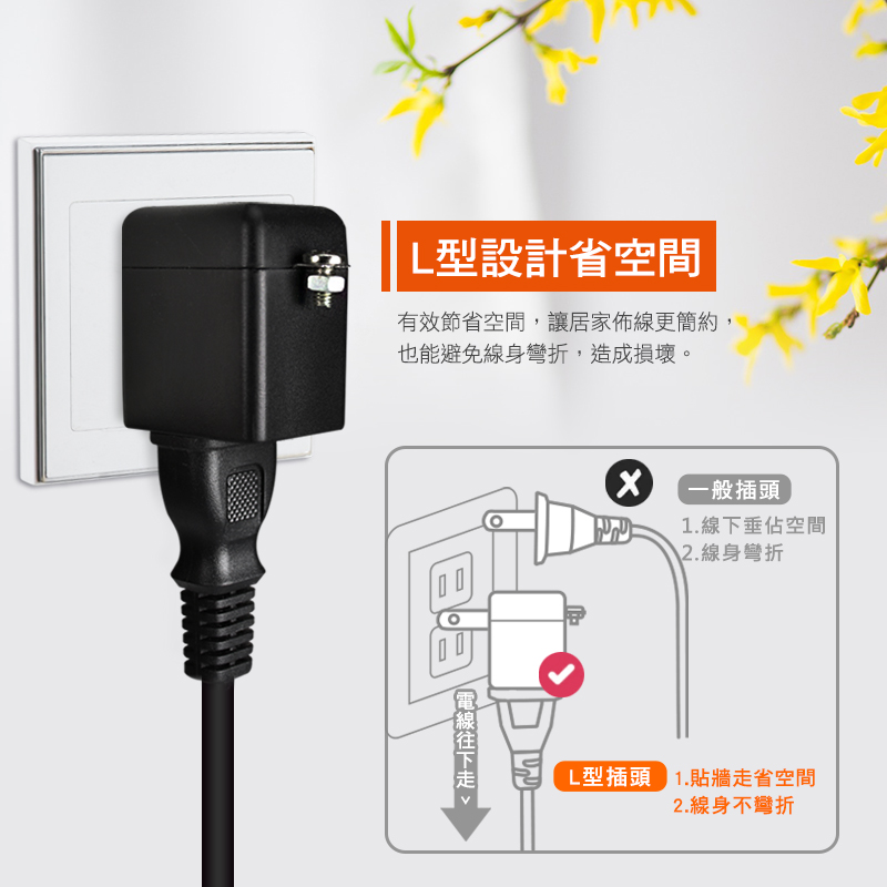 ● 品 名:3轉2電源轉接頭L型-黑色