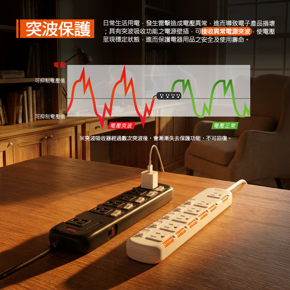 ● 品名:6開6插安全防塵防雷擊延長線