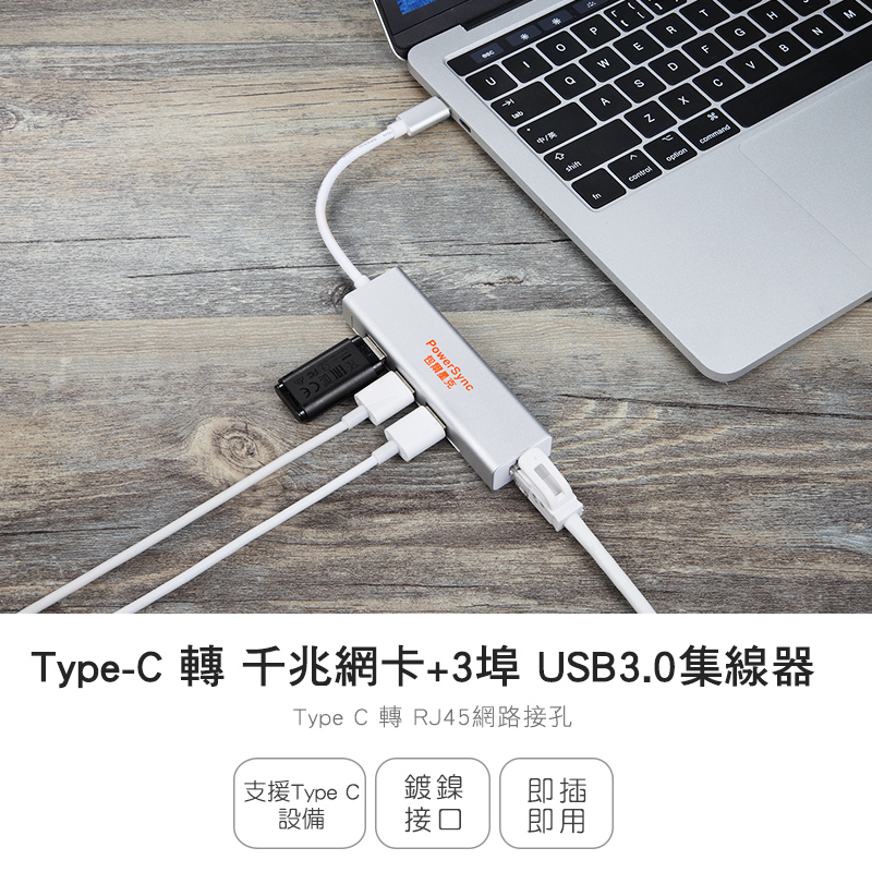 ● 品名:Type-C 轉千兆網卡+3埠 USB3.0 集線器