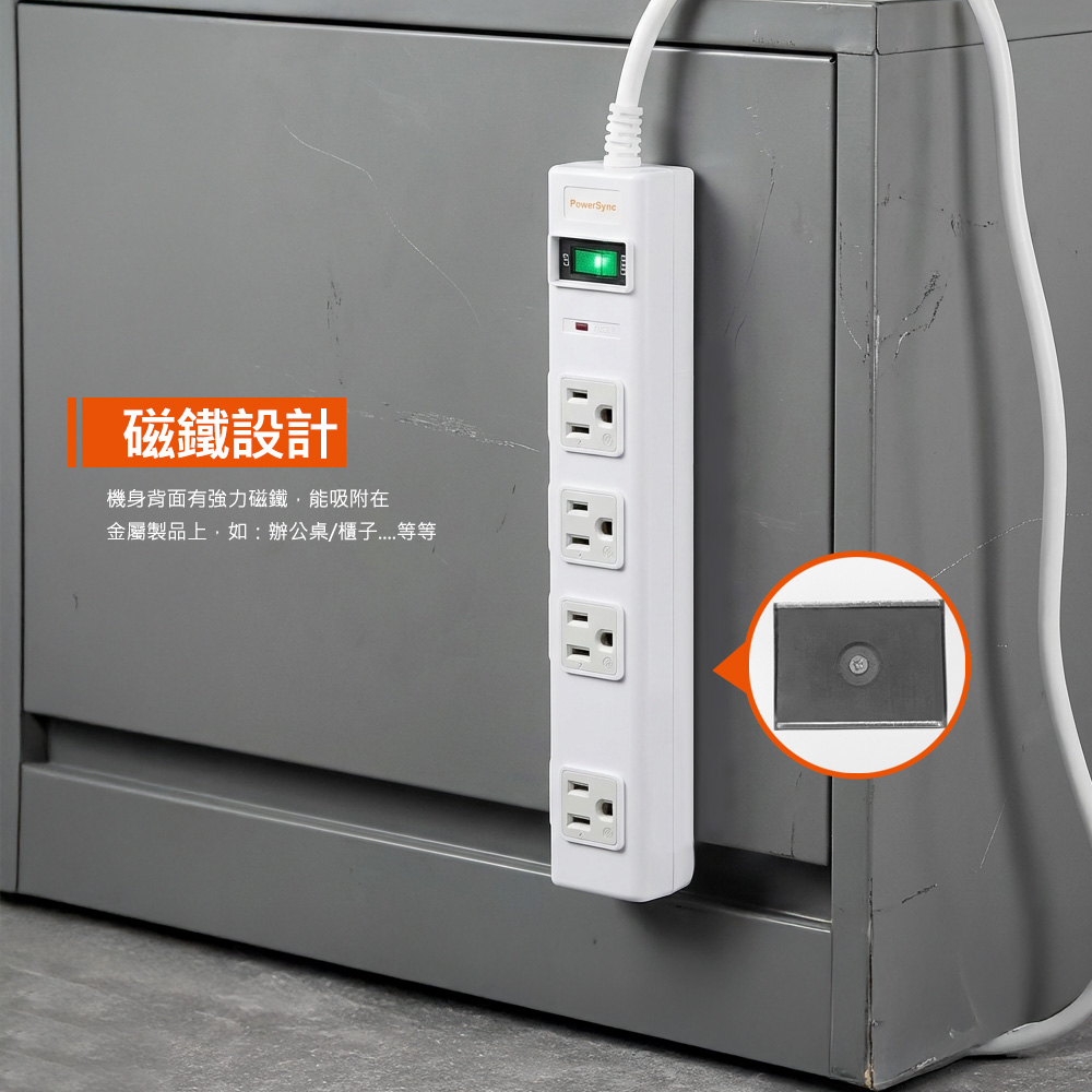 ● 品名:高耐燃3P+2P 8插尿素防雷擊延長線(白色)