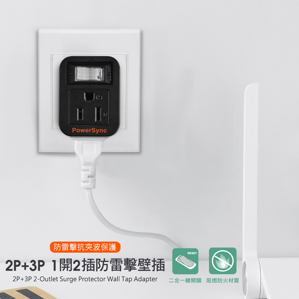 ● 品名:2P+3P 1開2插防雷擊壁插-黑色