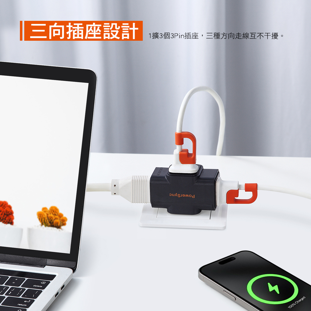 ‧ 三向插座設計,可依牆面轉向使用