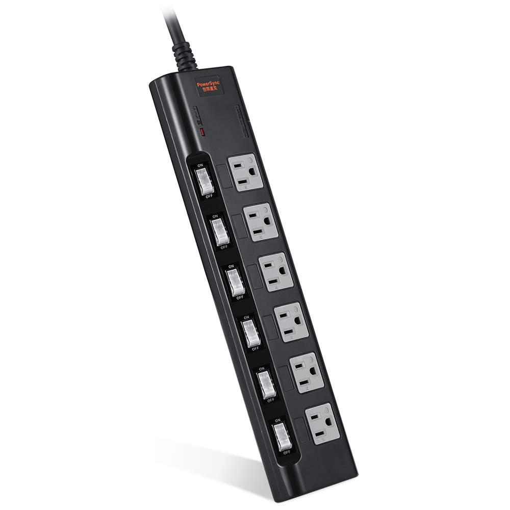 高耐燃六開六插尿素防雷擊延長線(磁鐵固定)黑色