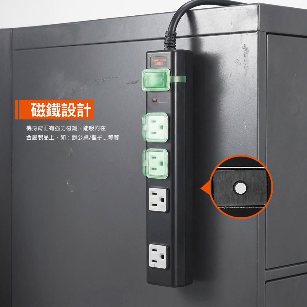 ● 品名:高耐燃3P+2P 8插尿素防雷擊延長線(黑色)
