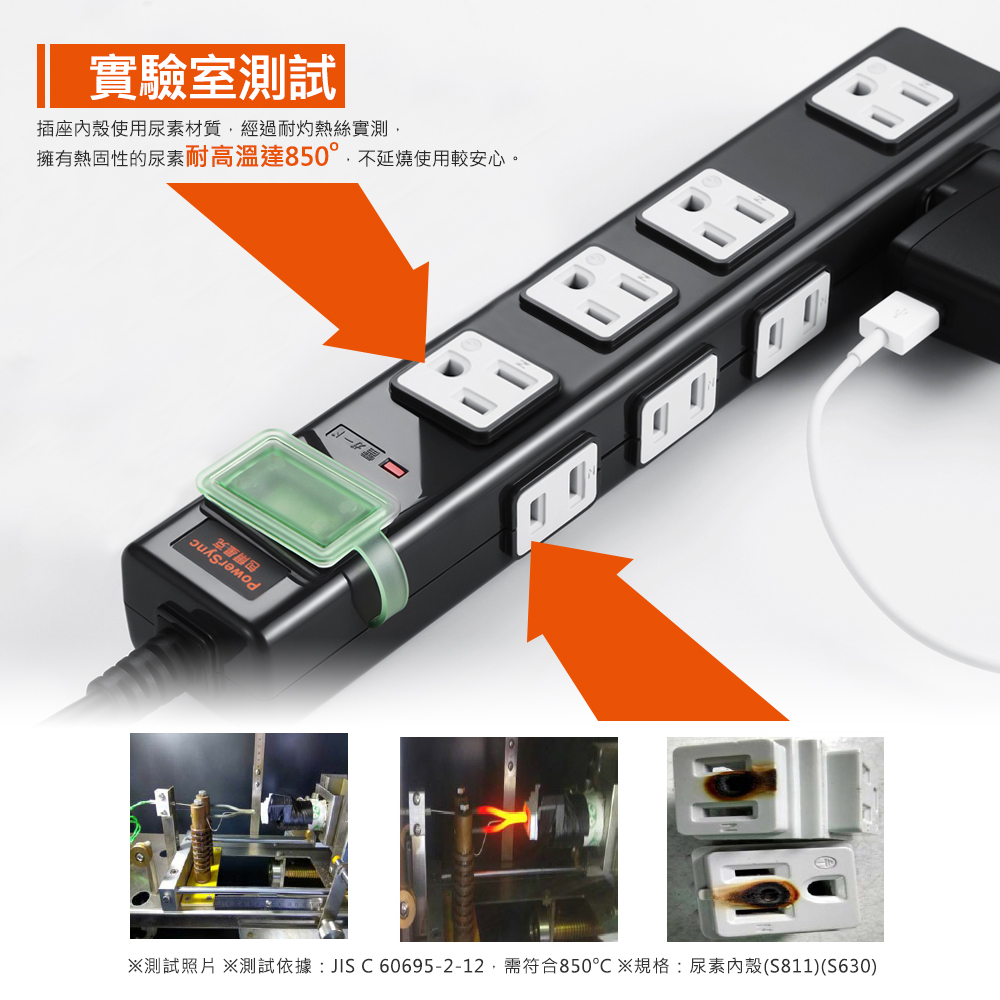 ● 品名:高耐燃3孔+2孔8插尿素防雷擊延長線(磁鐵固定)黑色