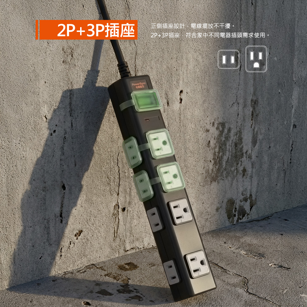 ● 品名:高耐燃3P+2P 8插尿素防雷擊延長線(黑色)