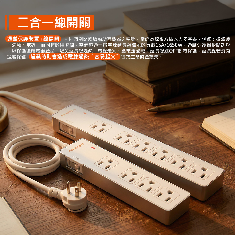 ● 品名:1開6插防雷擊雙色延長線