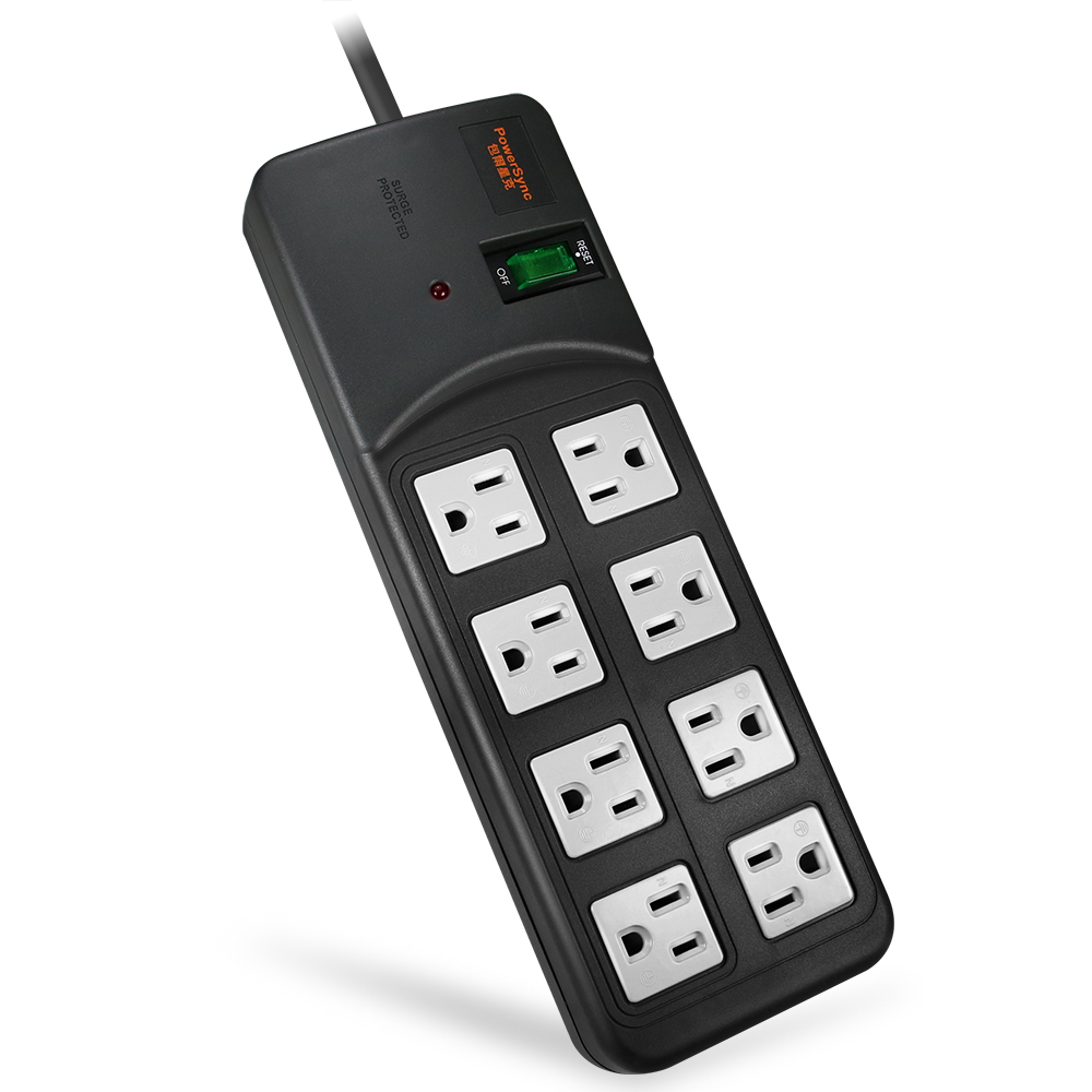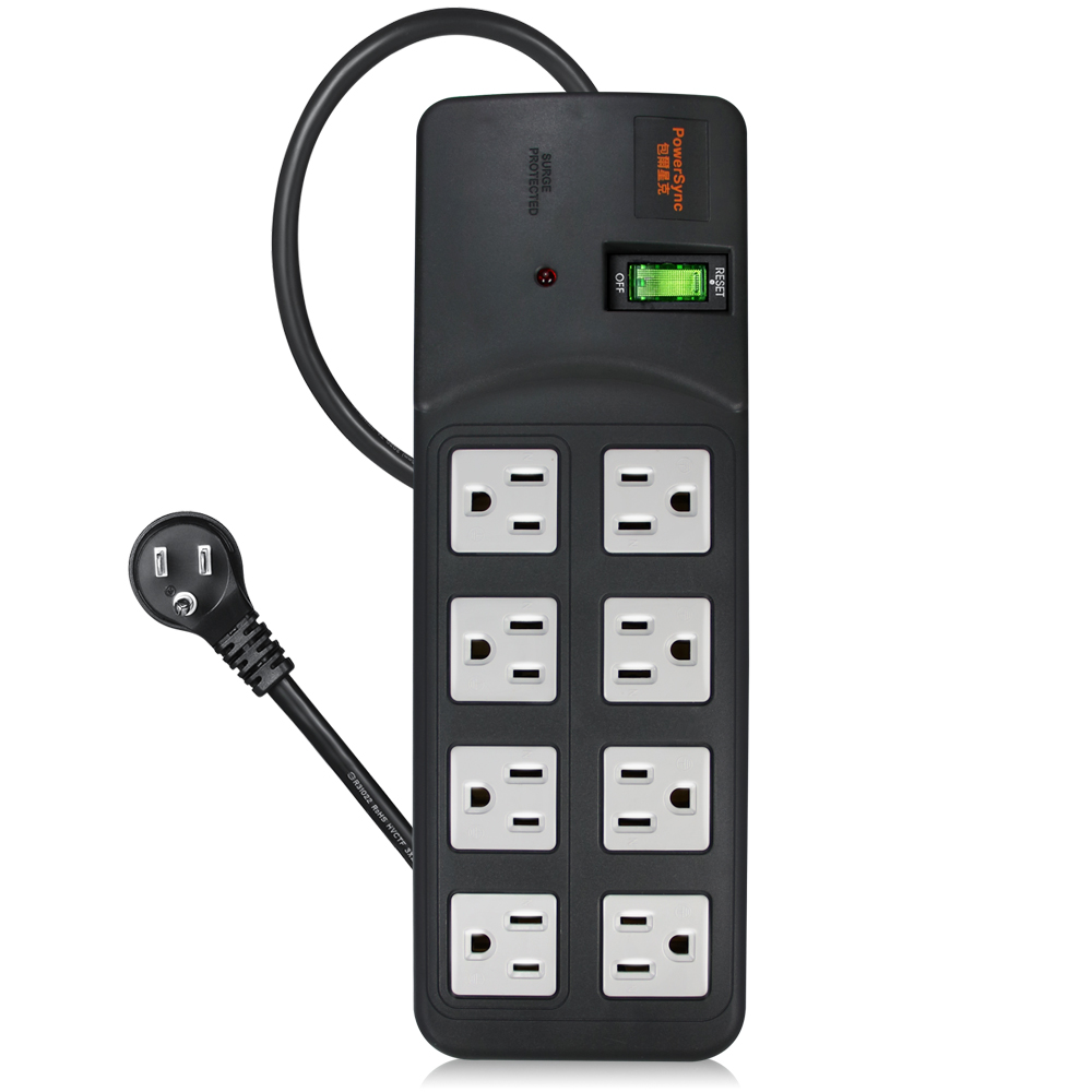 高耐燃1開8插尿素防雷擊延長線-黑色(磁鐵固定)
