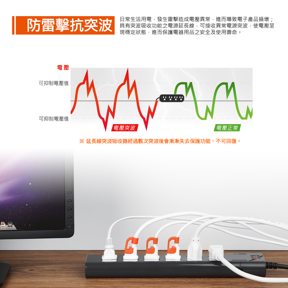 ● 品名:1開8插尿素安全防雷擊延長線(磁鐵固定)
