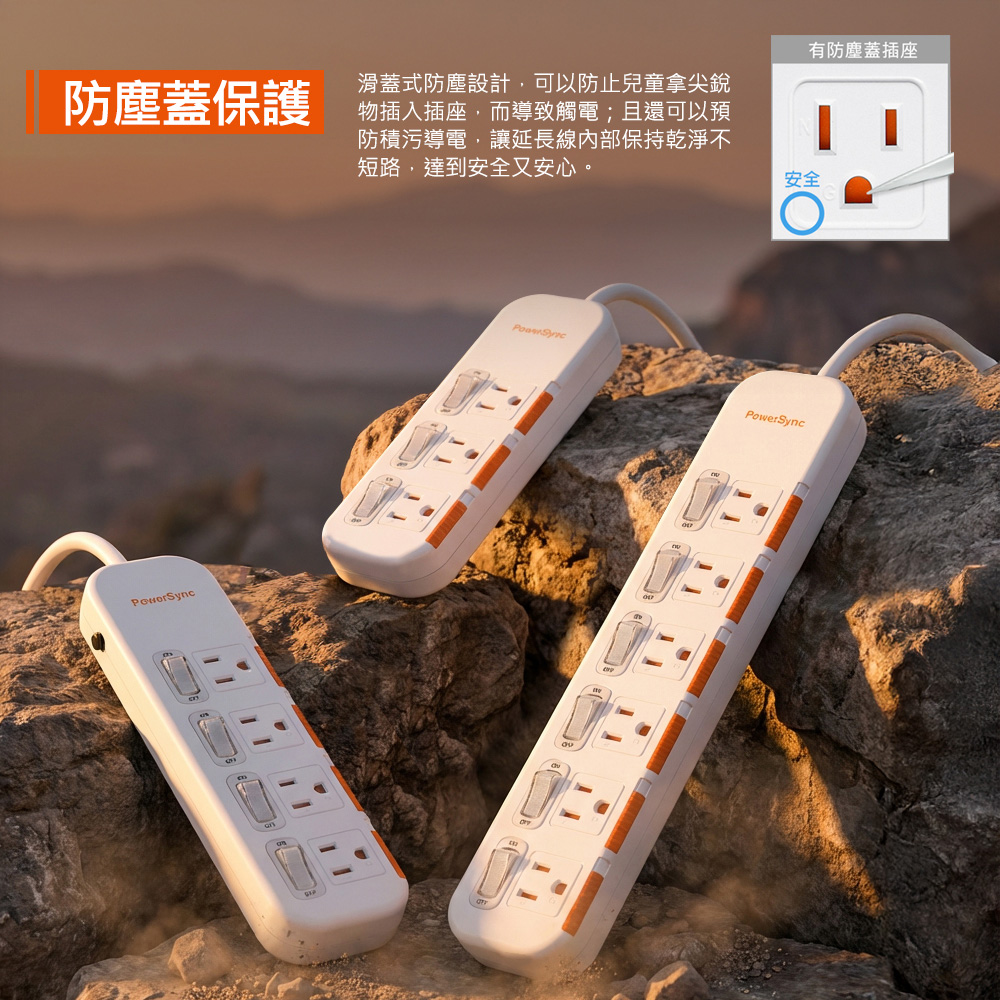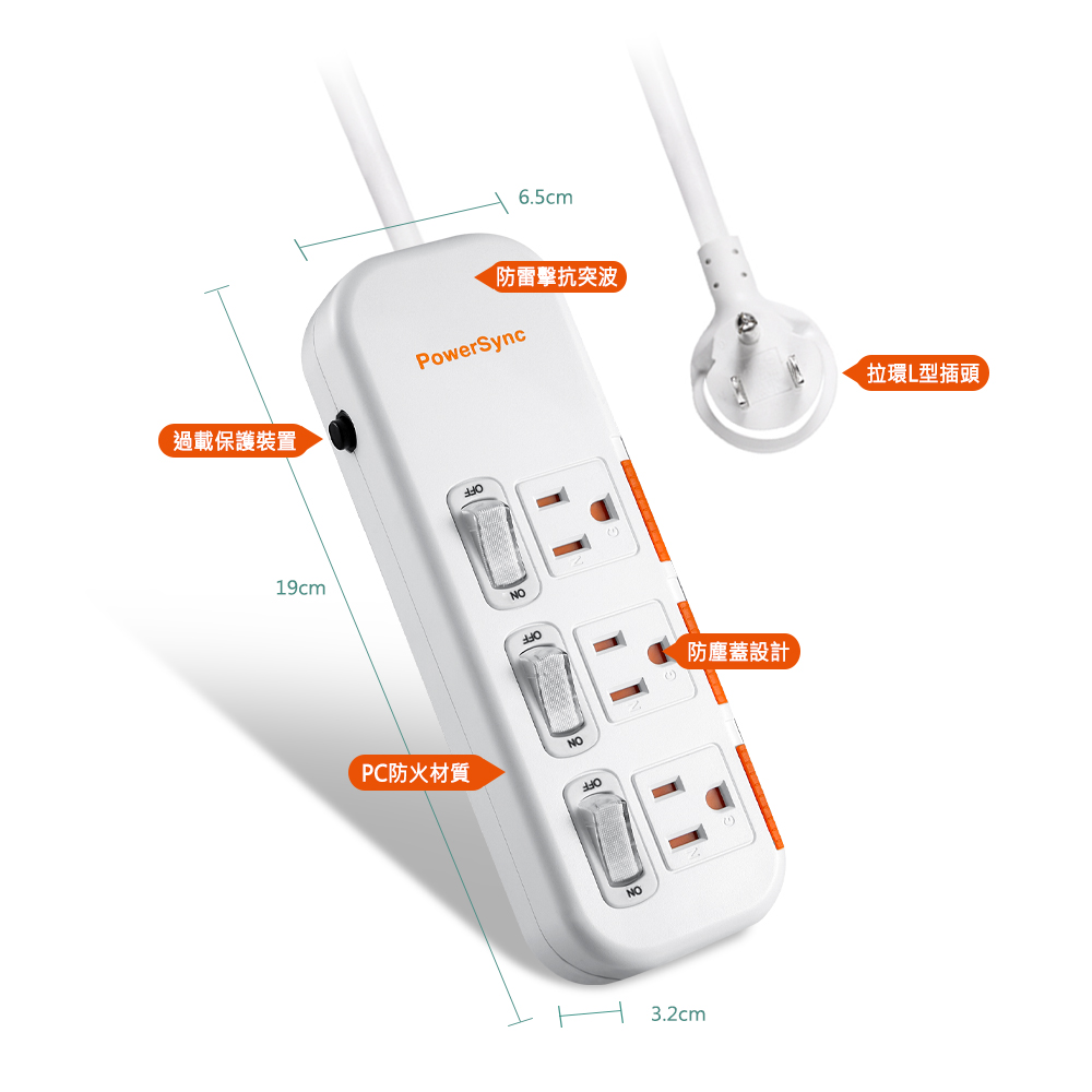 ● 品名:3開3插滑蓋防塵防雷擊延長線-白色
