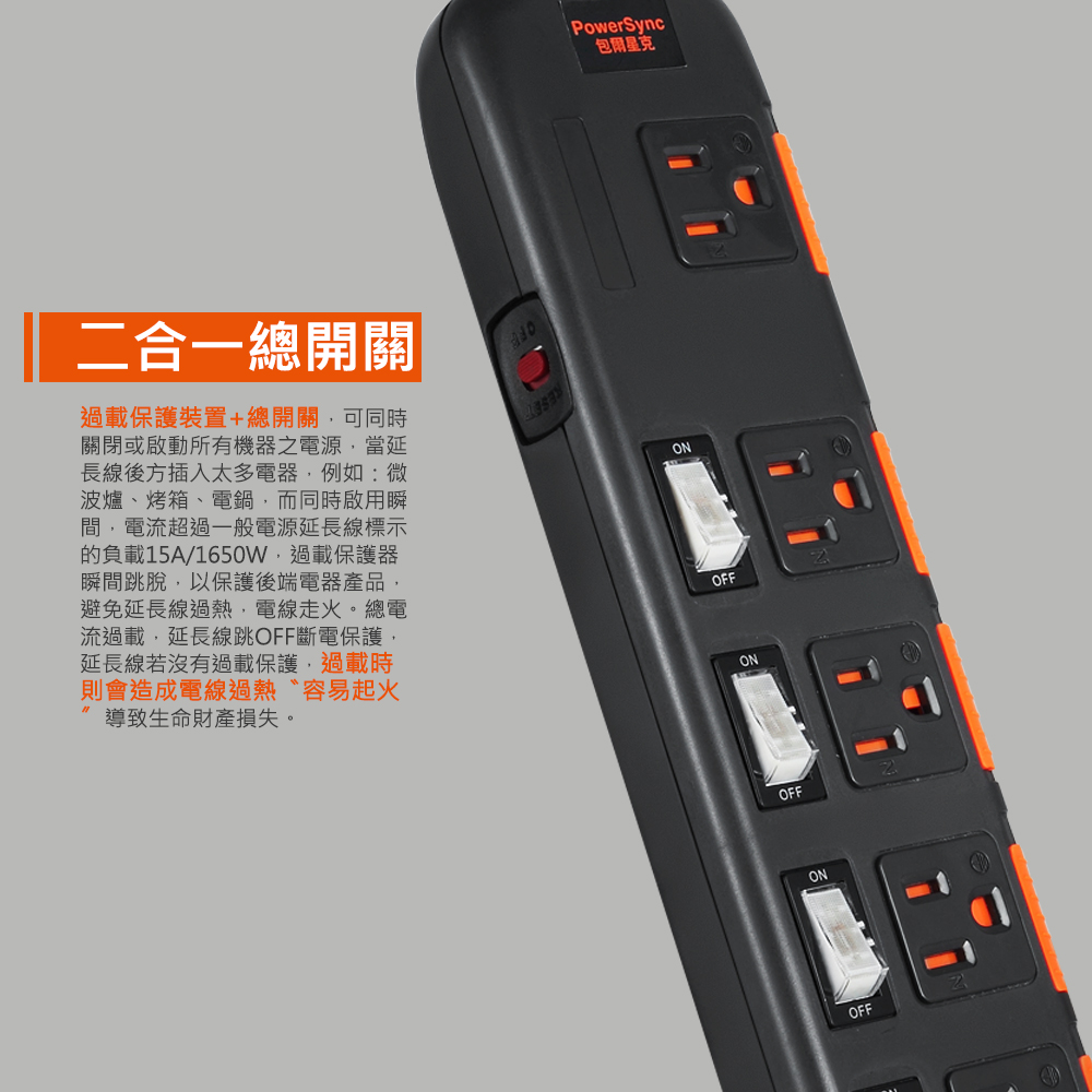 ● 插座:3Pin插頭/三孔-6個插座(防塵蓋設計)/5個獨立開關/1個總開關