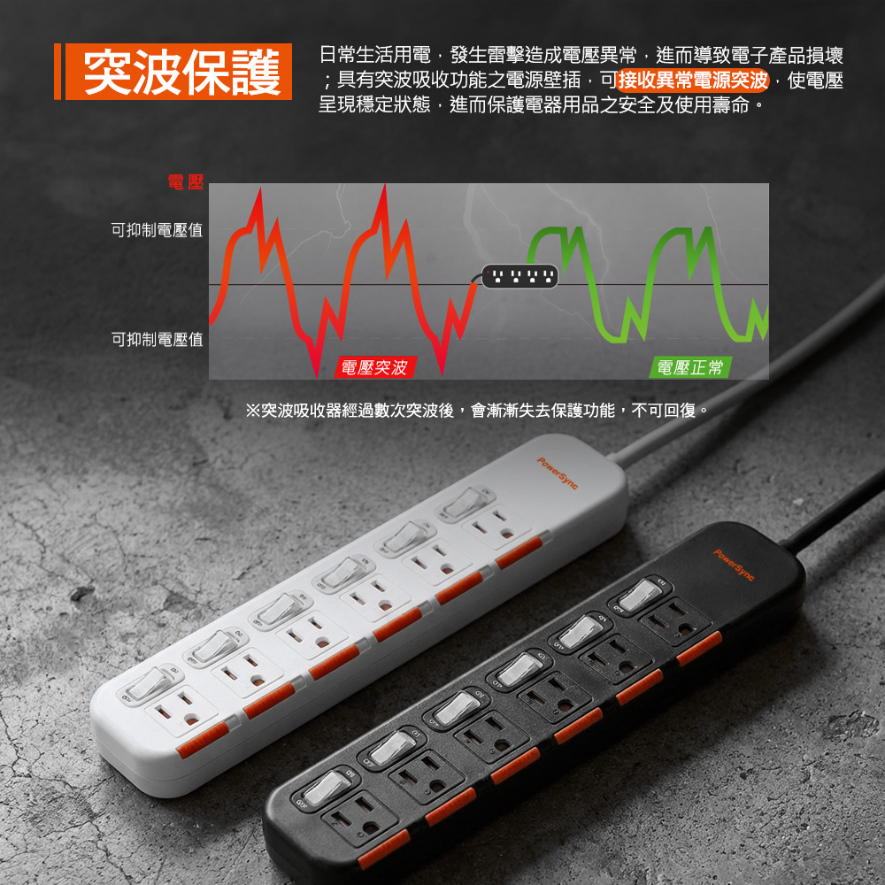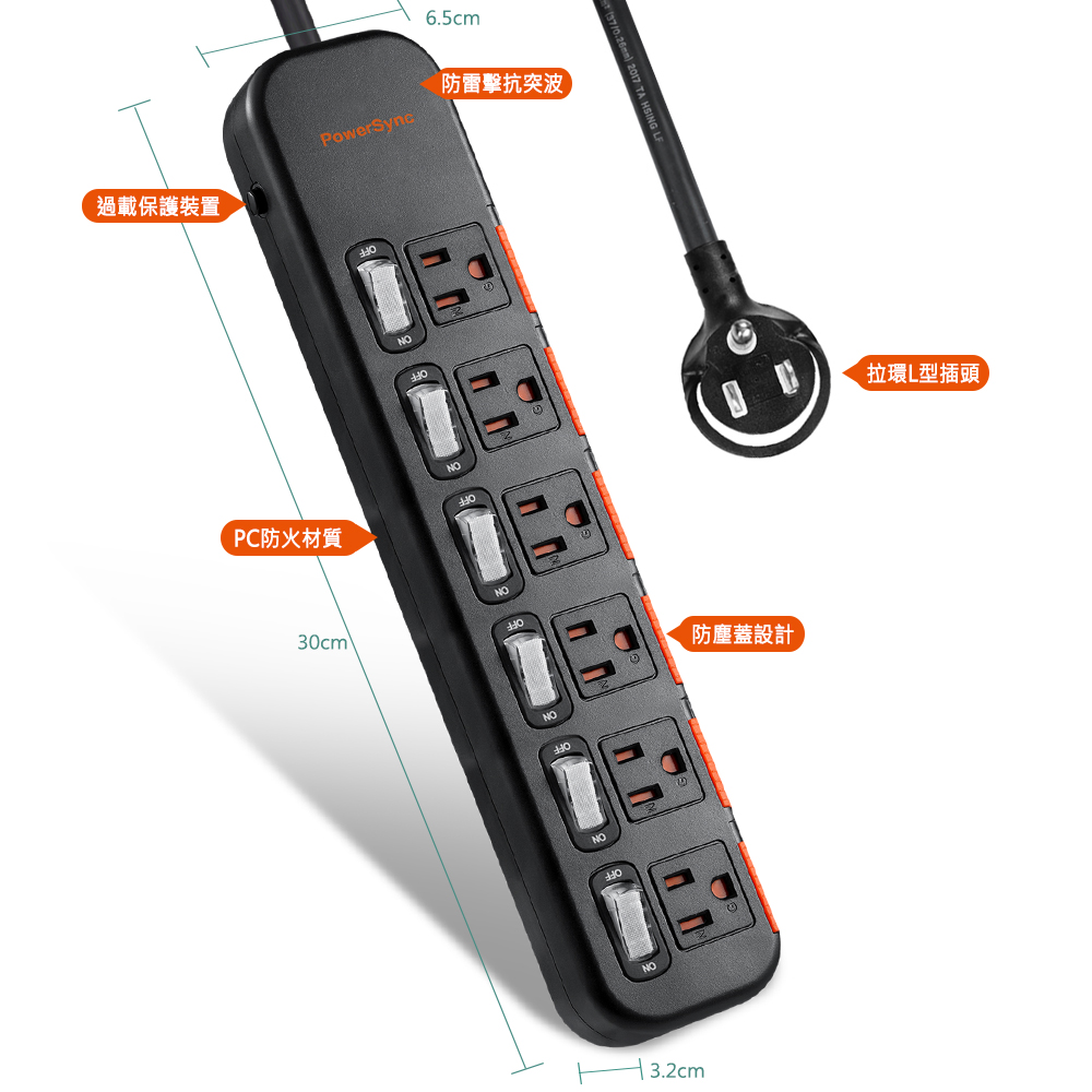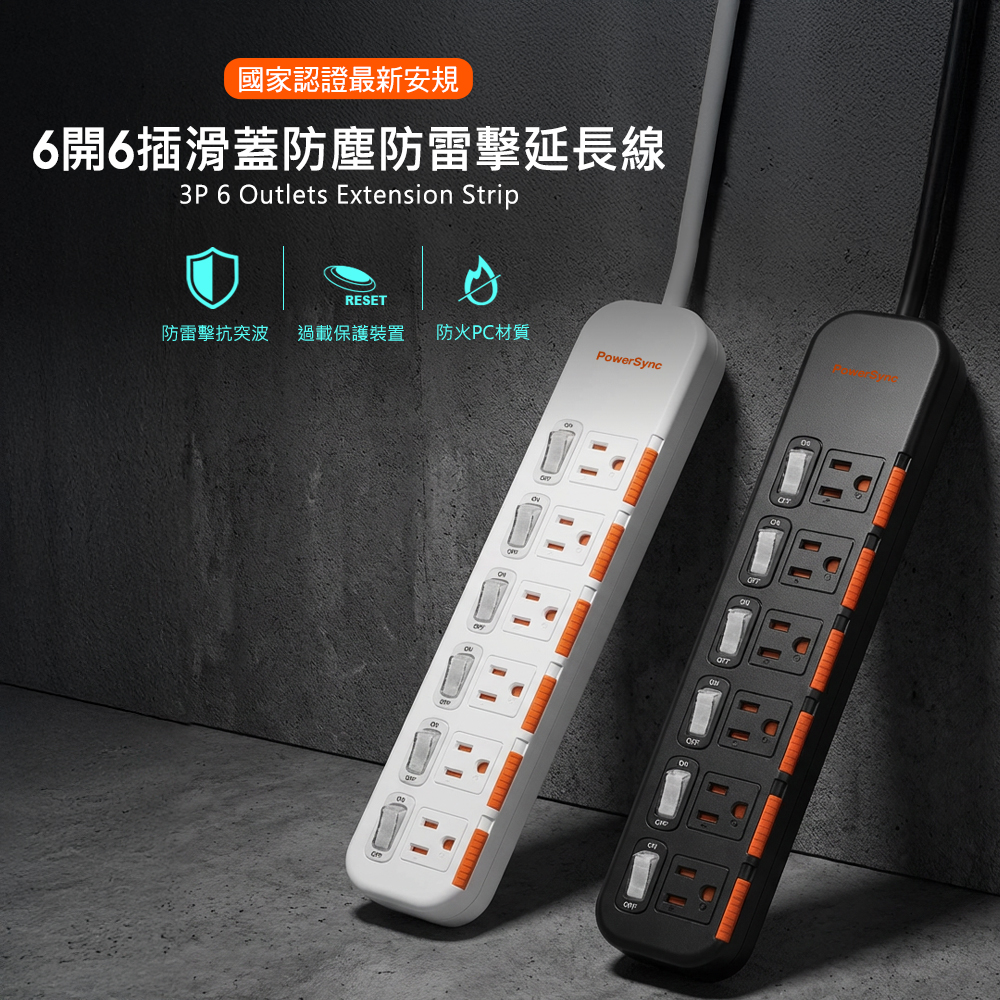 ● 品名:6開6插滑蓋防塵防雷擊延長線