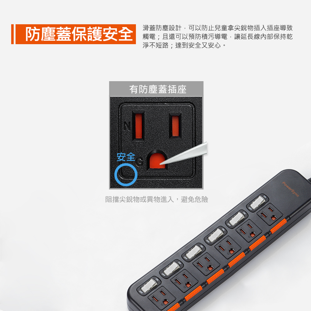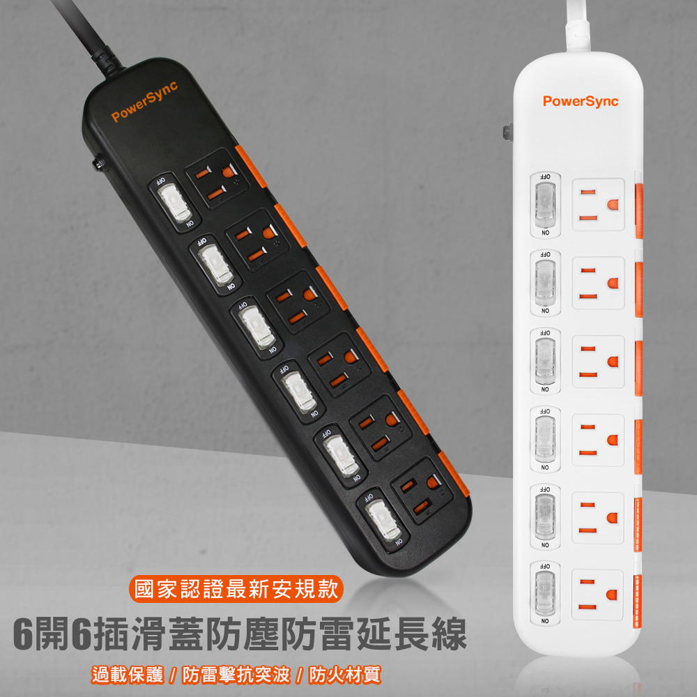 ● 品名:6開6插滑蓋防塵防雷擊延長線
