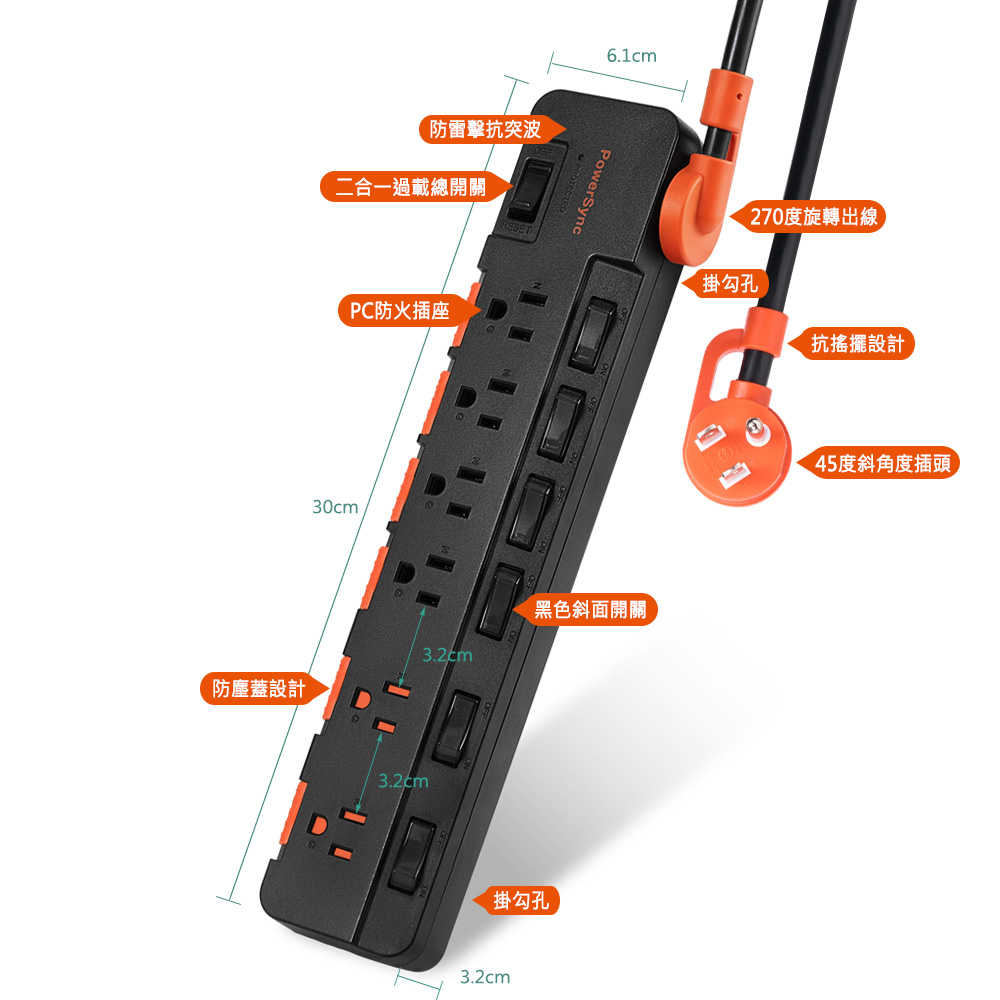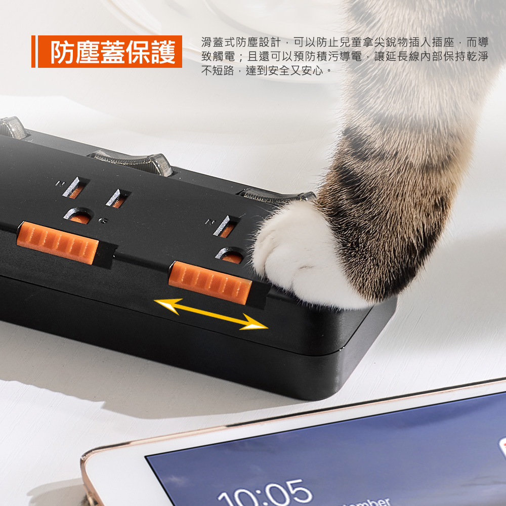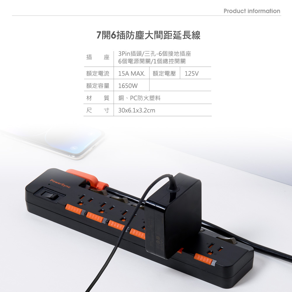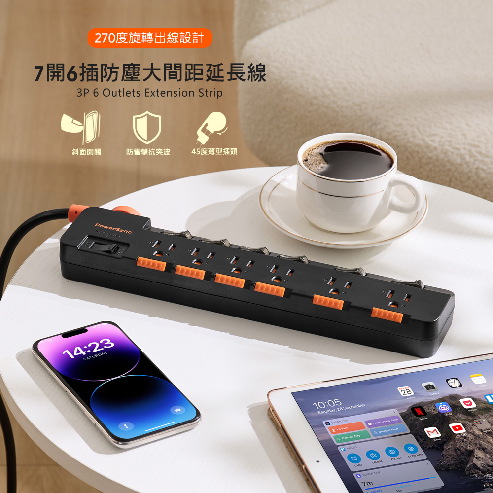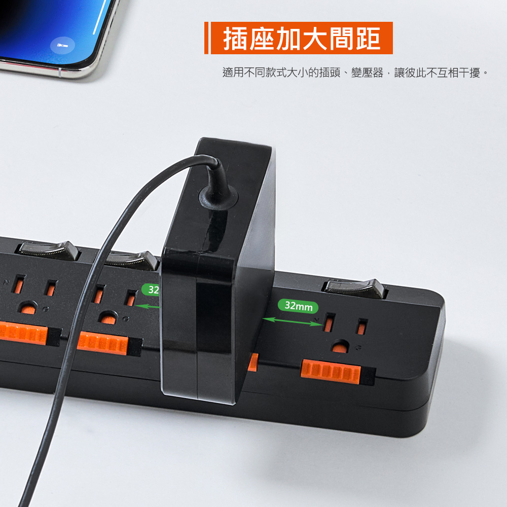 ● 商品名稱:7開6插防雷防塵大間距延長線