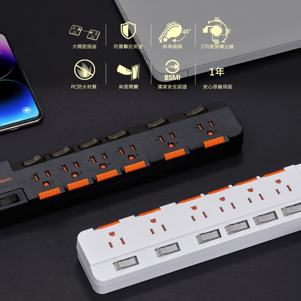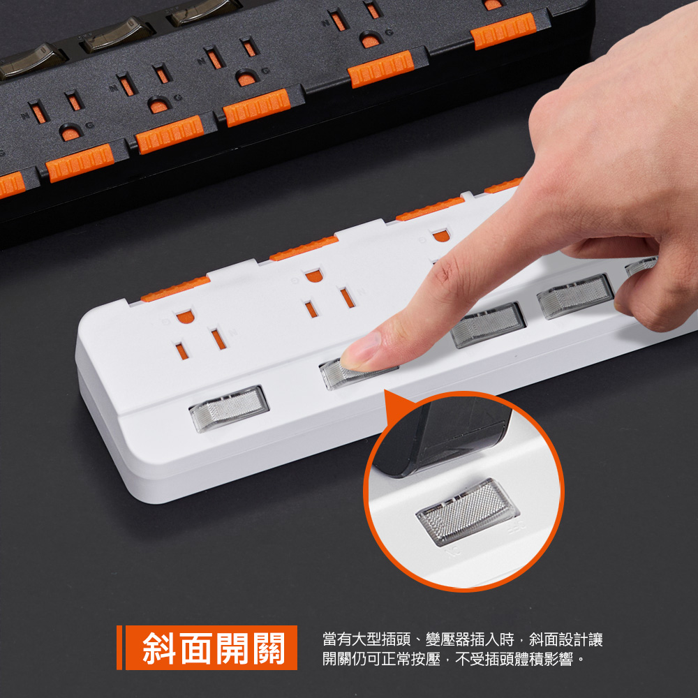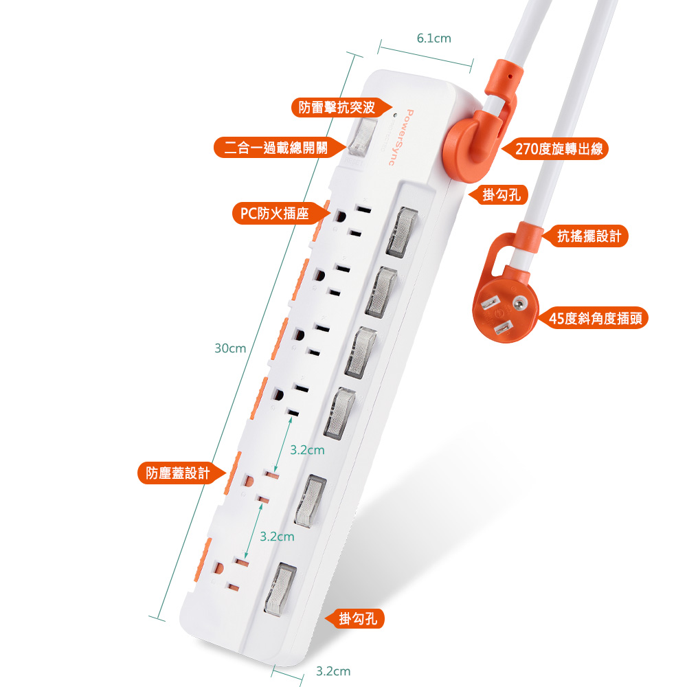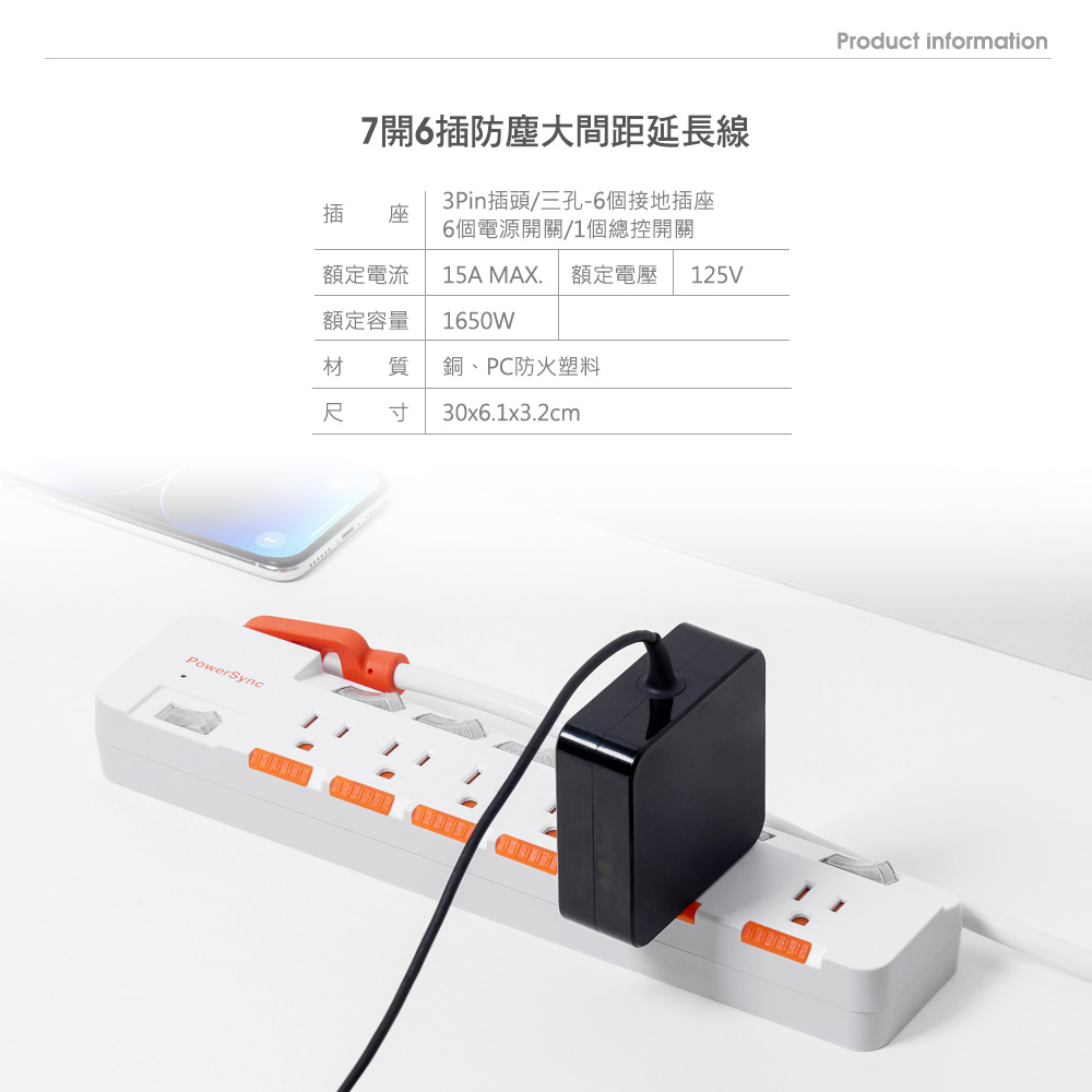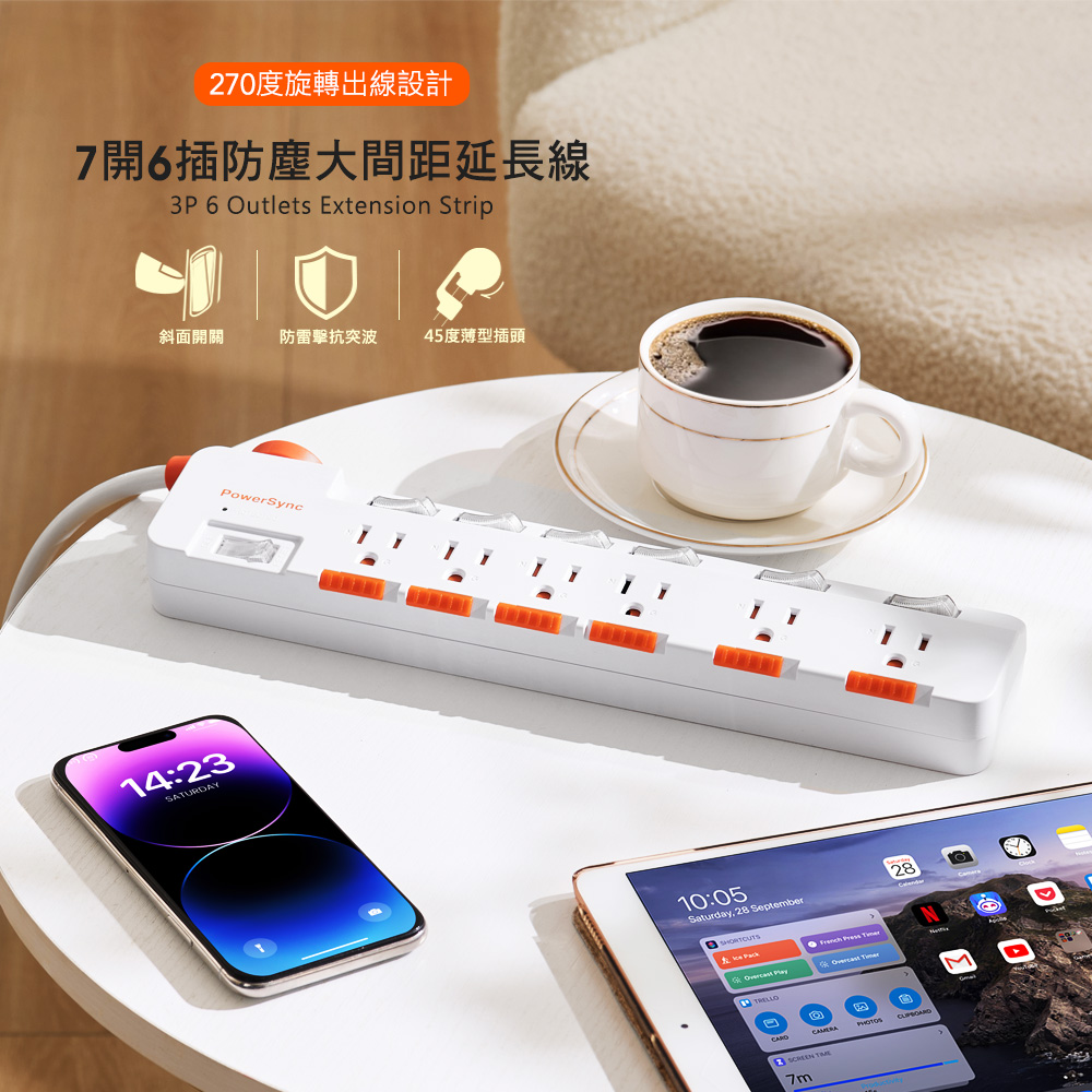 ● 商品名稱:7開6插防雷防塵大間距延長線