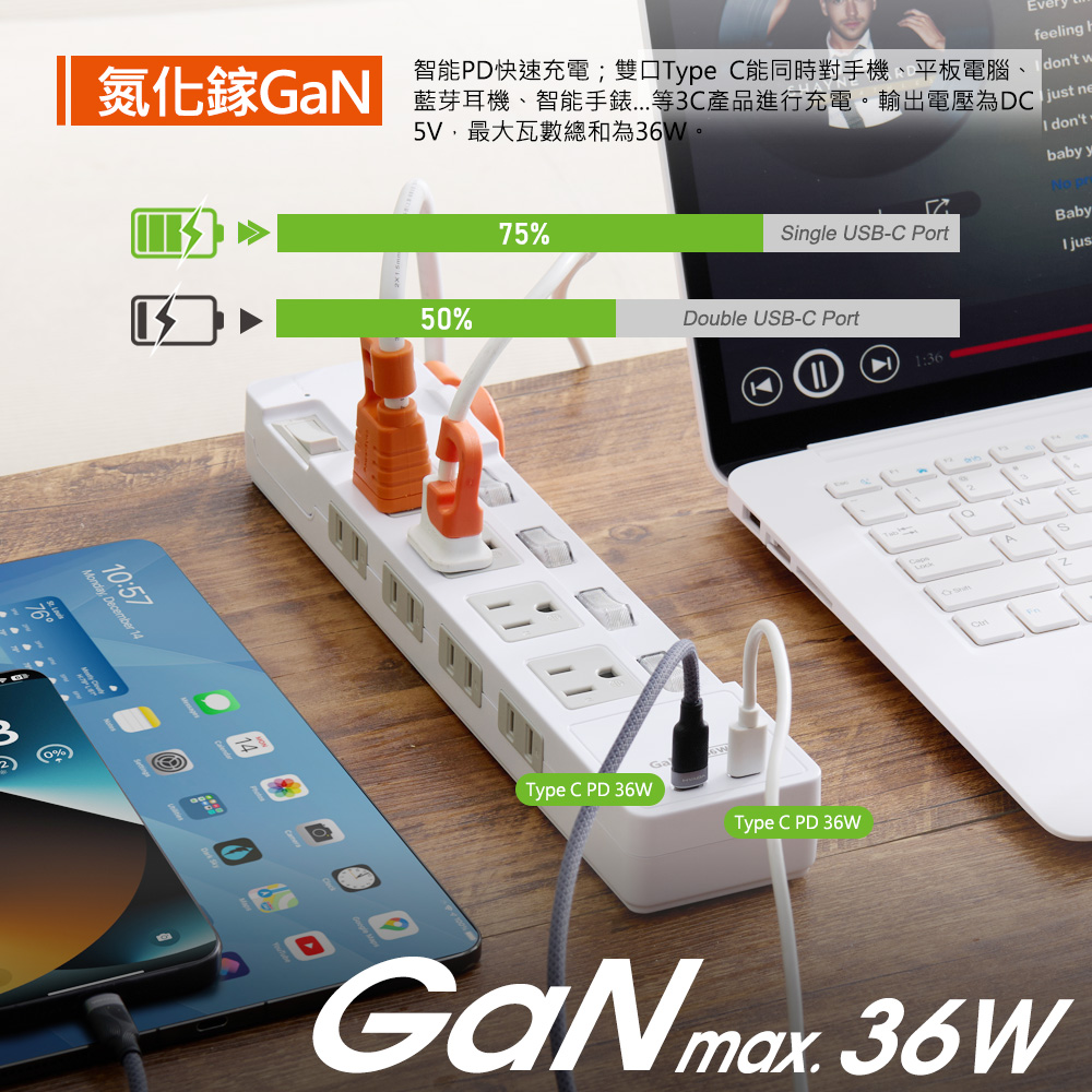 ● USB總輸出功率:36W MAX.