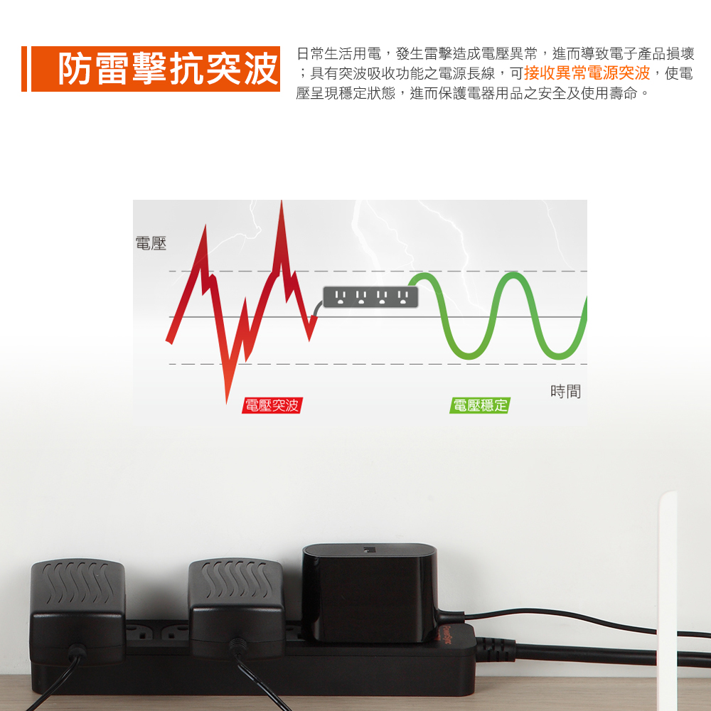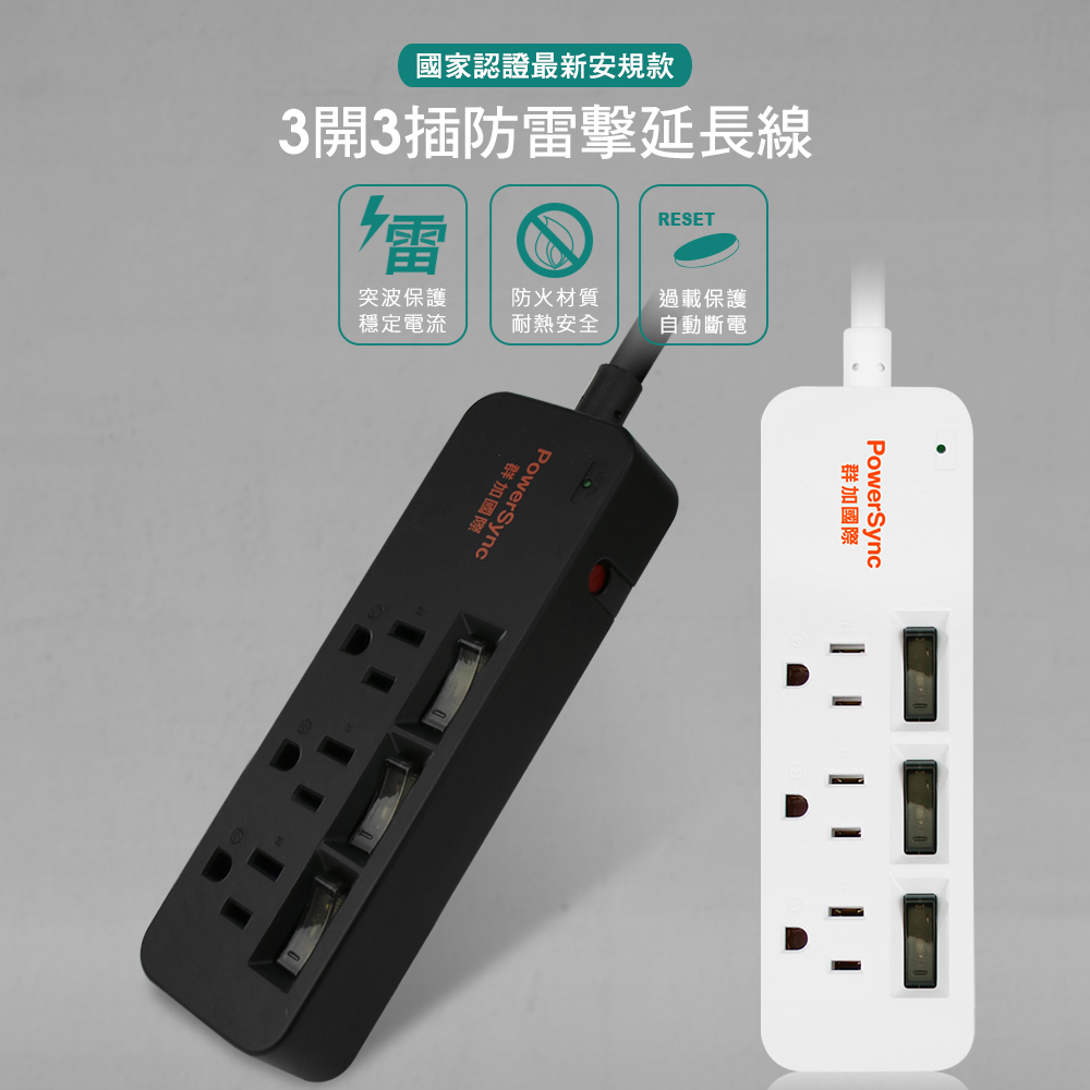 ● 品名:3開3插防雷擊延長線(單色開關)