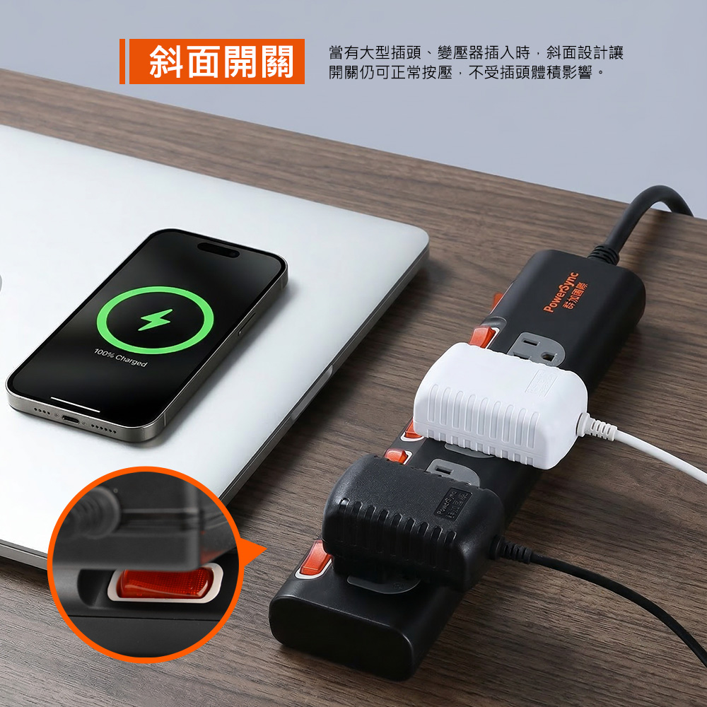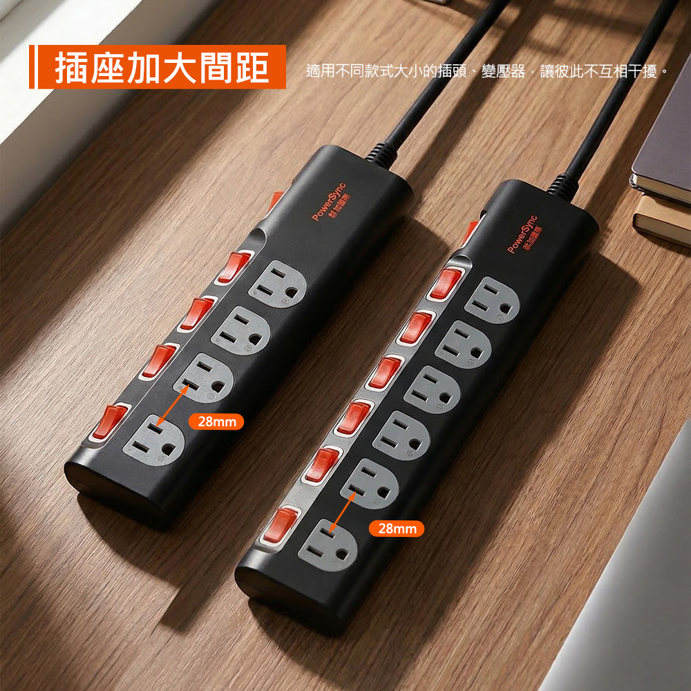 ● 品名:5開4插防雷擊抗搖擺延長線(加大間距)