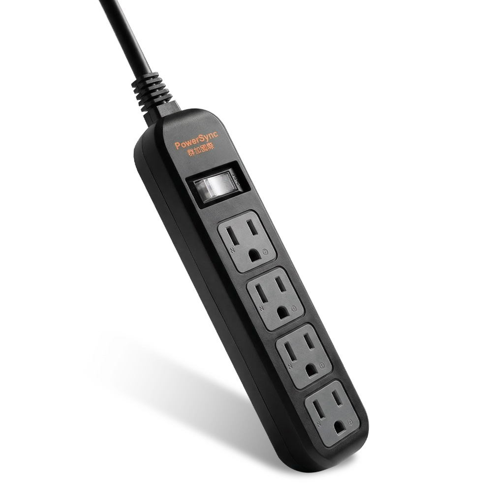 ● 品名:直立式1開4插防雷擊抗搖擺延長線-黑色