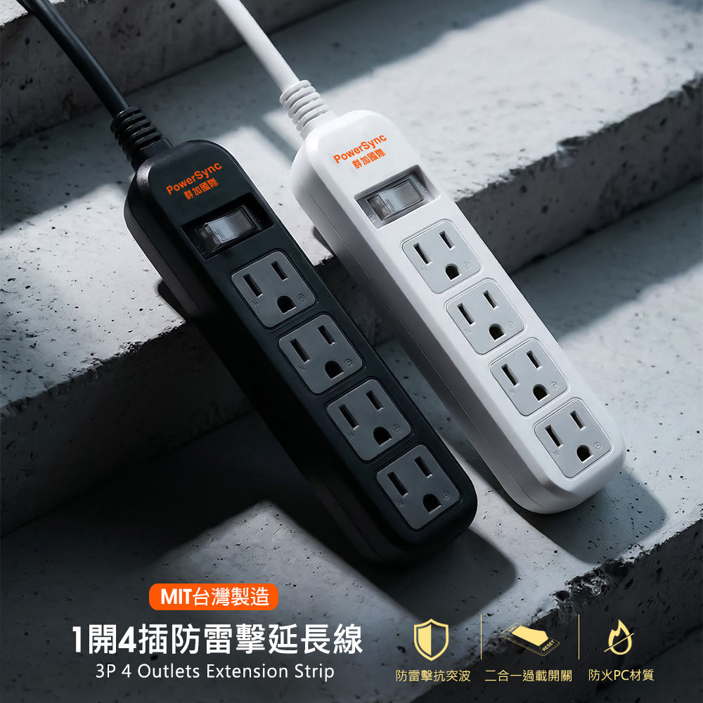 ● 品名:直立式1開4插防雷擊抗搖擺延長線-白色