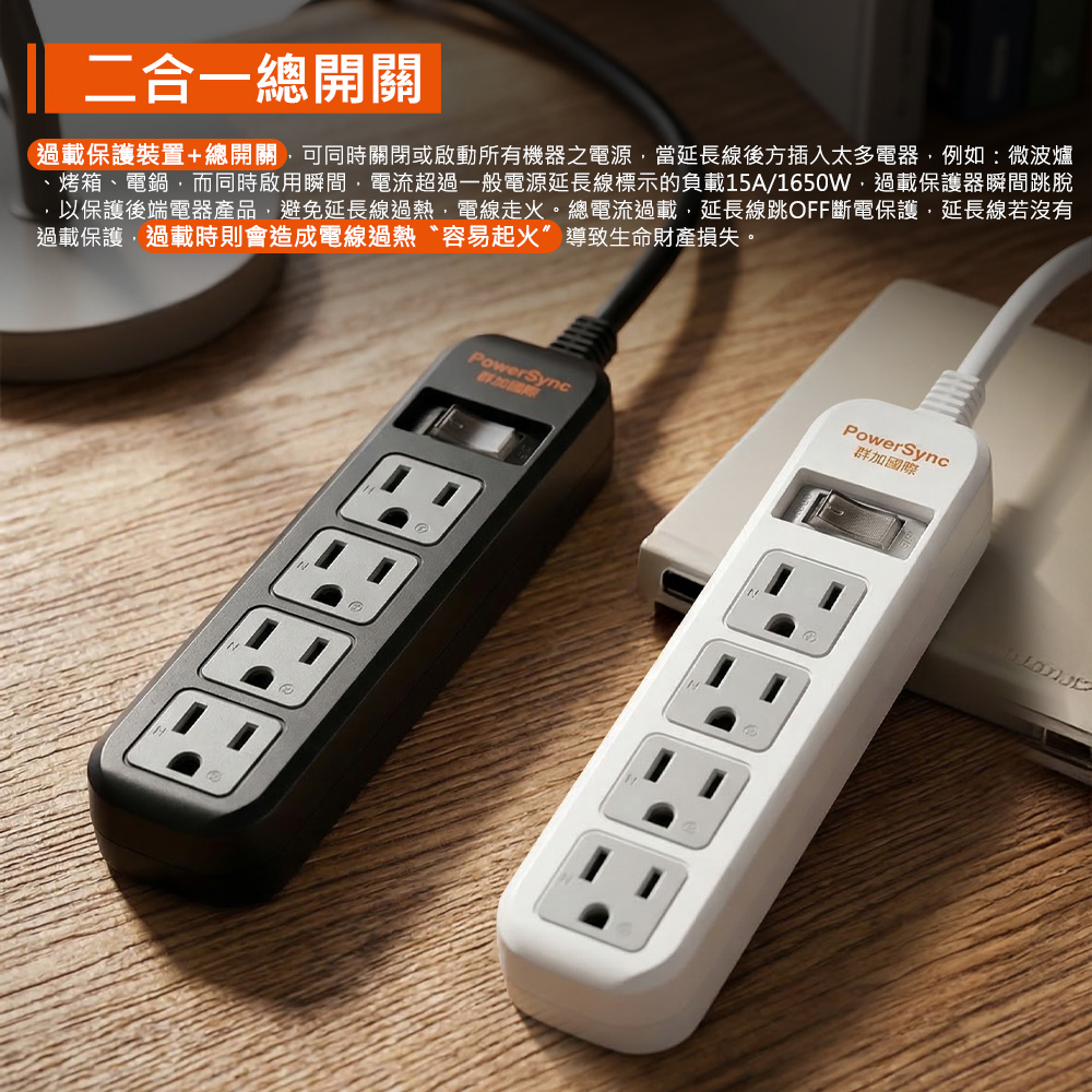 ● 額定容量:15A/125V/1,650W MAX