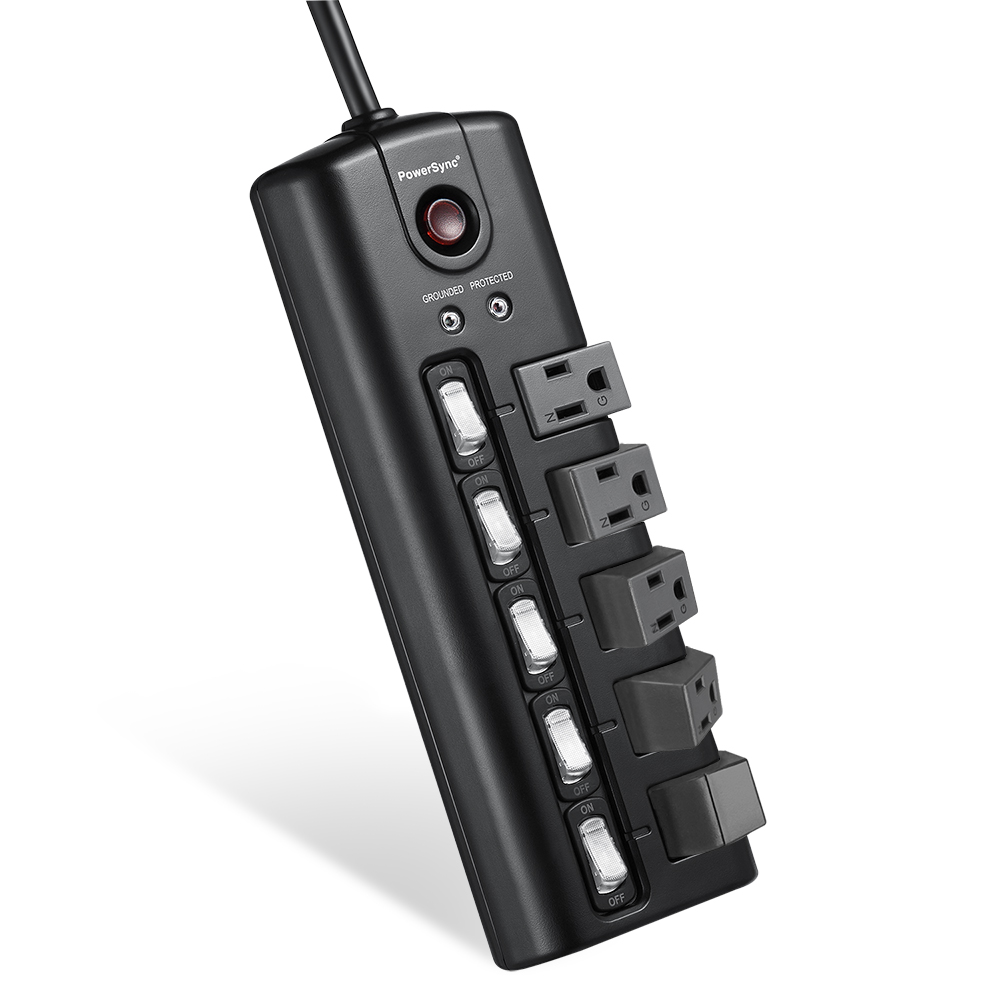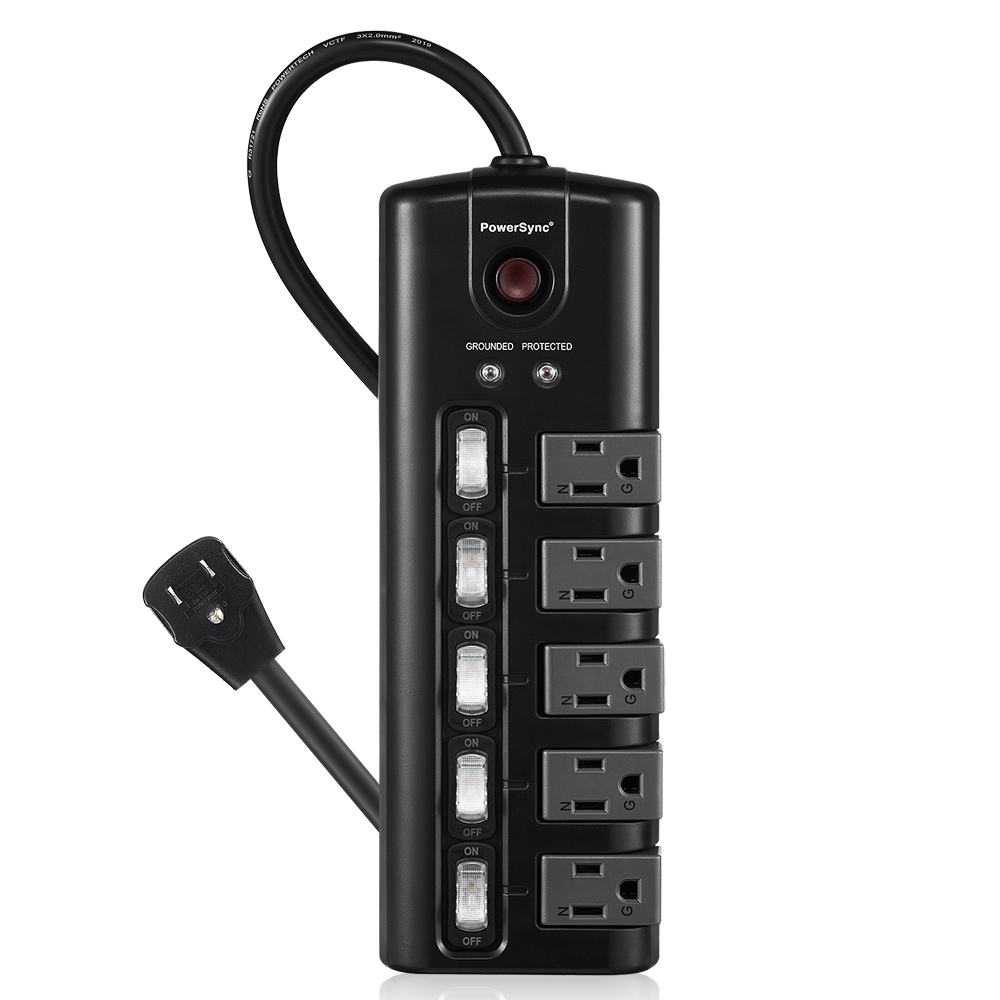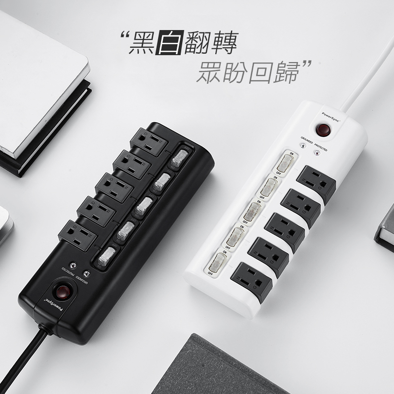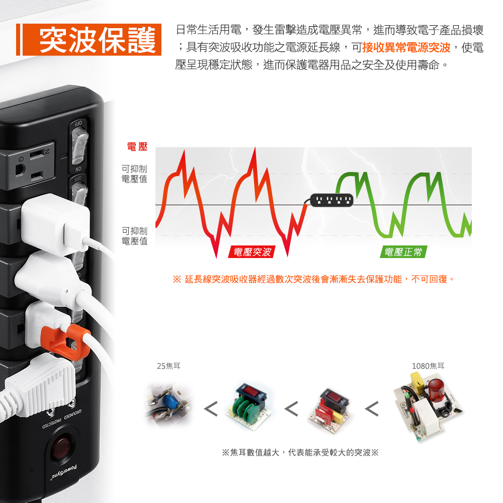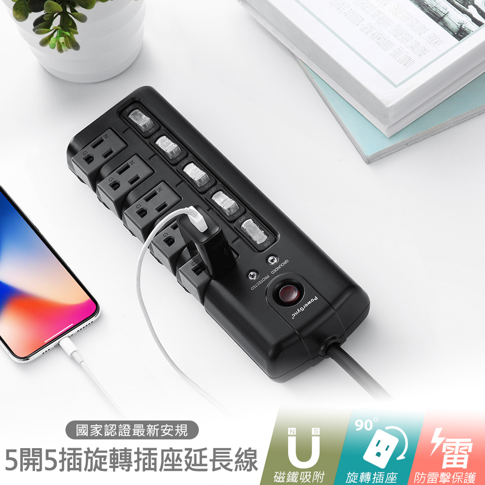 - ● 品名:5開5插防雷擊旋轉插座延長線(磁鐵固定)-黑色