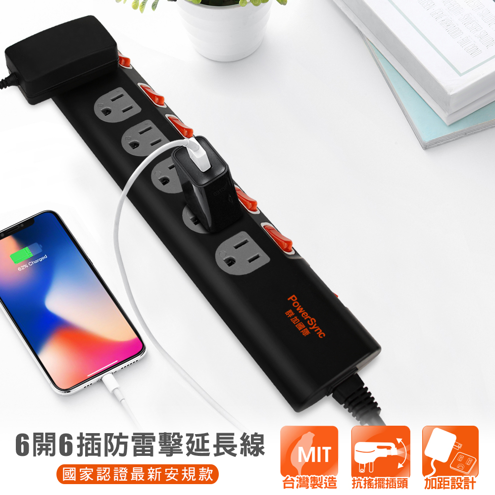 ● 品名:7開6插防雷擊抗搖擺延長線(加大間距)