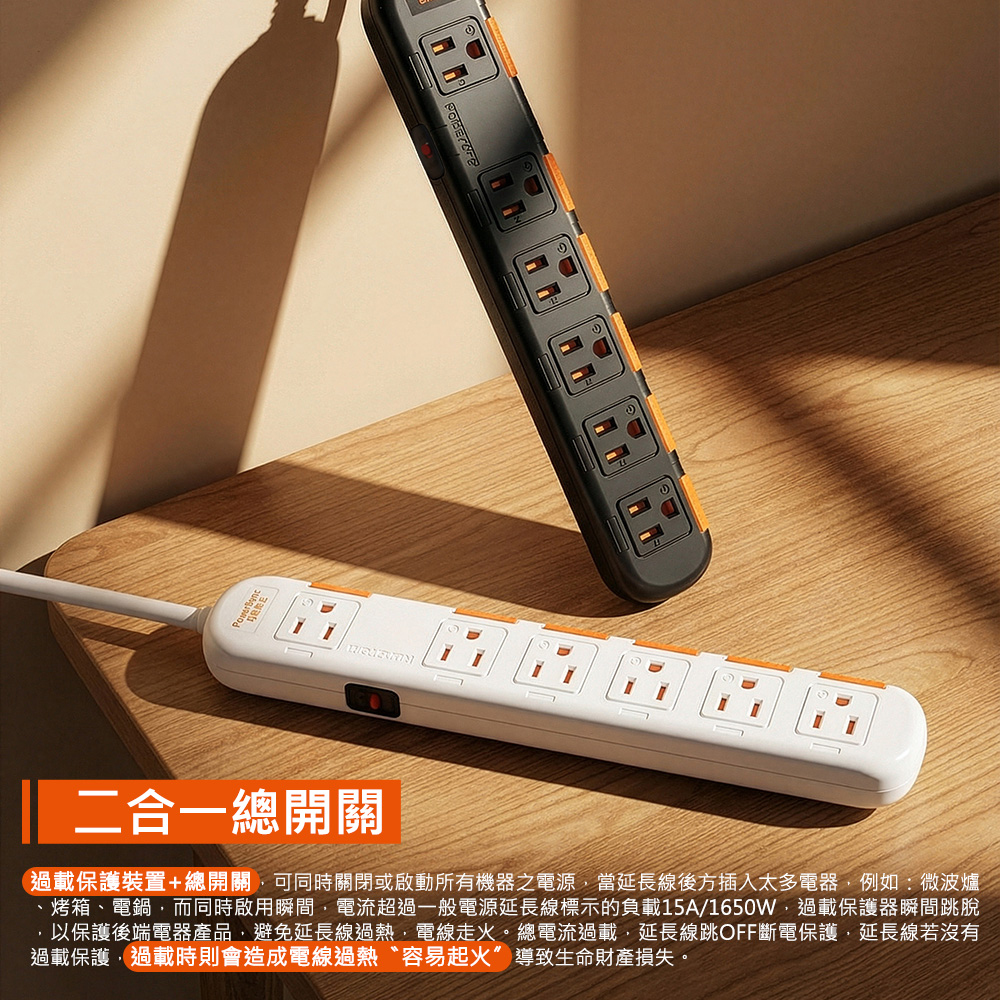 ● 品名:1開6插安全防塵防雷擊延長線​