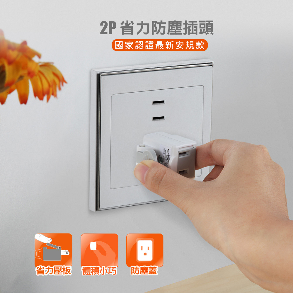 ● 插座:2Pin插頭/二孔-2個插座(帶防塵蓋)