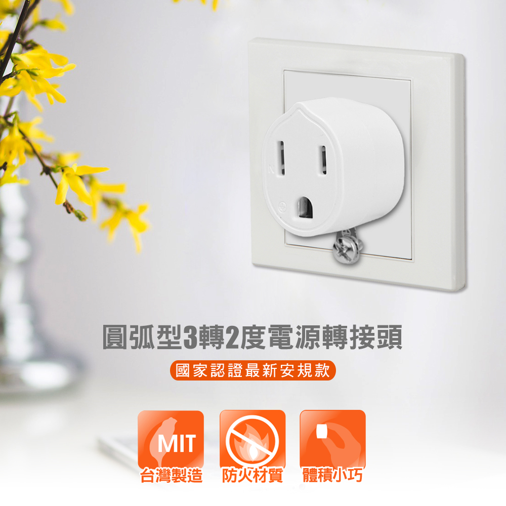 ● 品 名:圓弧型3轉2電源轉接頭-白色