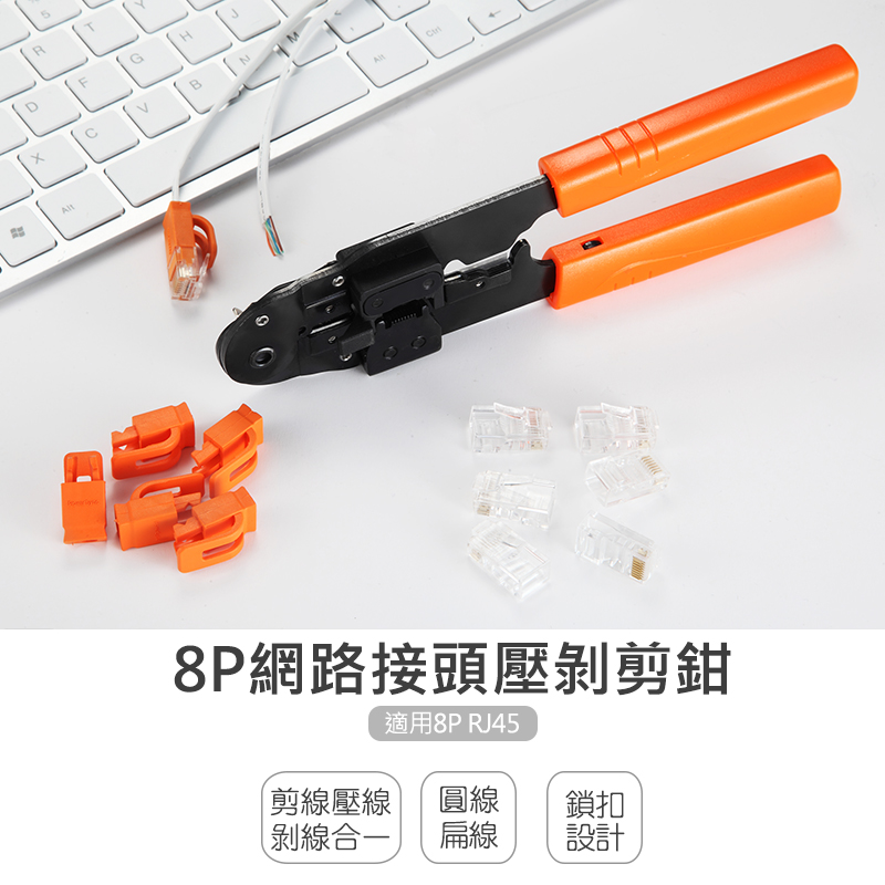 功 能:用於壓接8P8C/RJ45水晶頭,具剝線、剪線、壓接